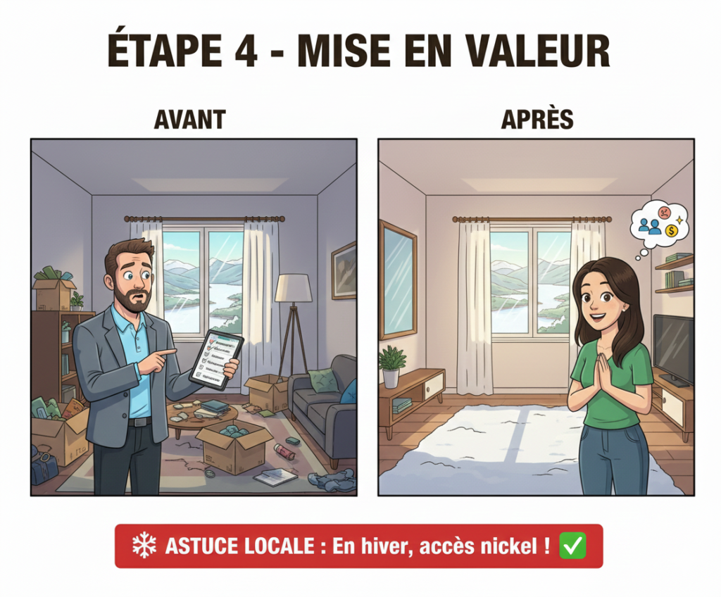 📌 Astuce locale : en hiver, la neige peut être un atout… si l’accès est nickel. Sinon ça fait peur. Un chemin praticable et un stationnement clair, ça rassure.